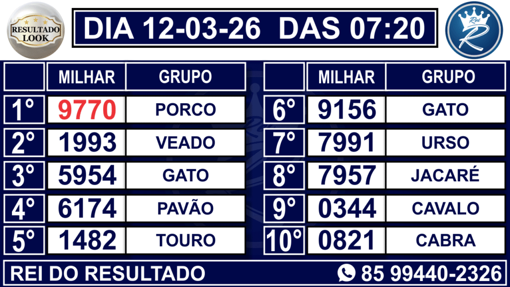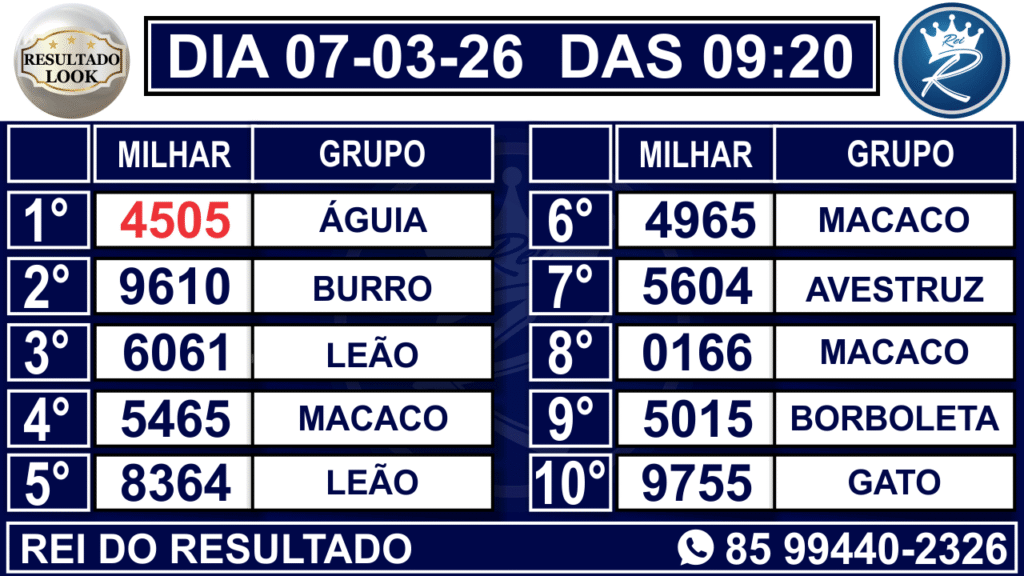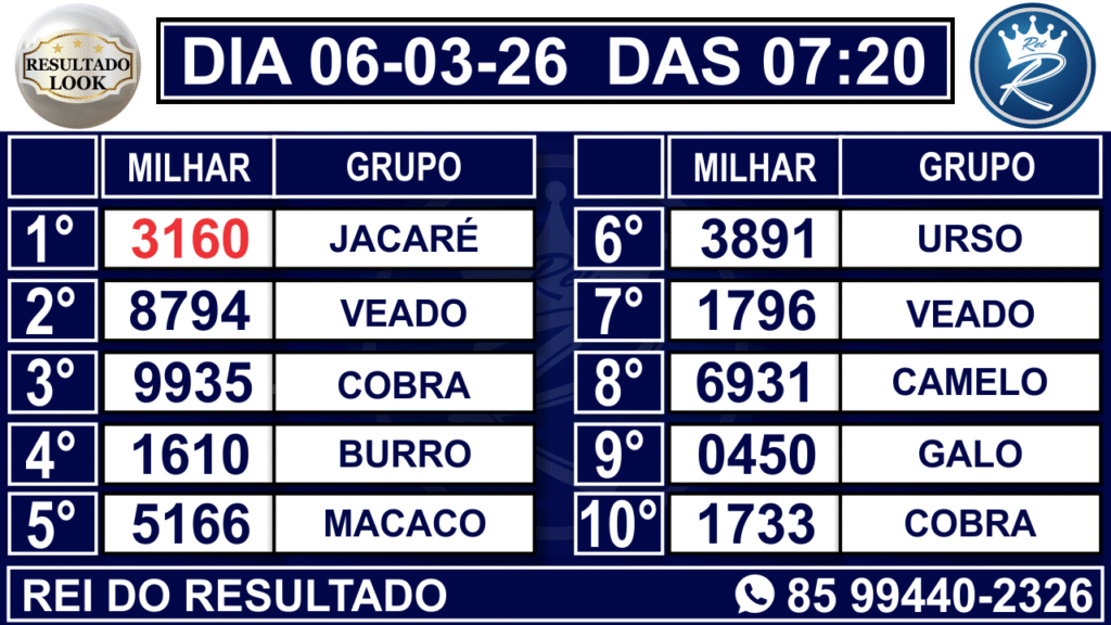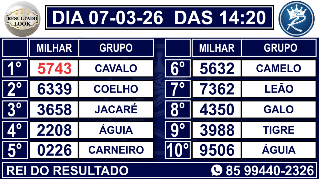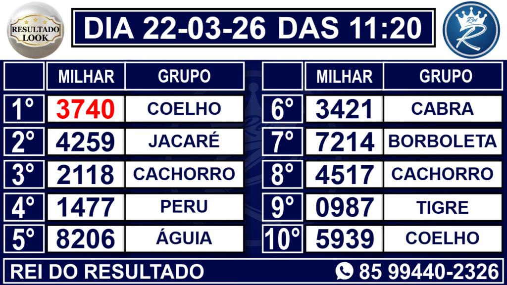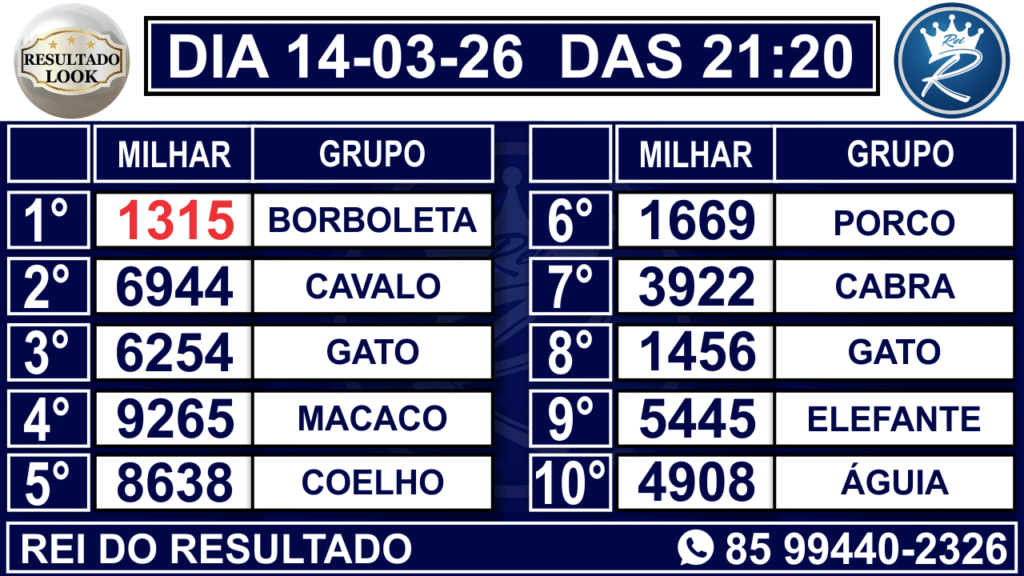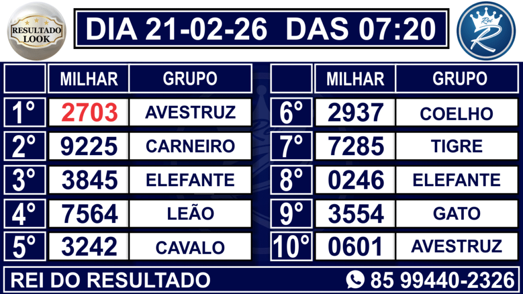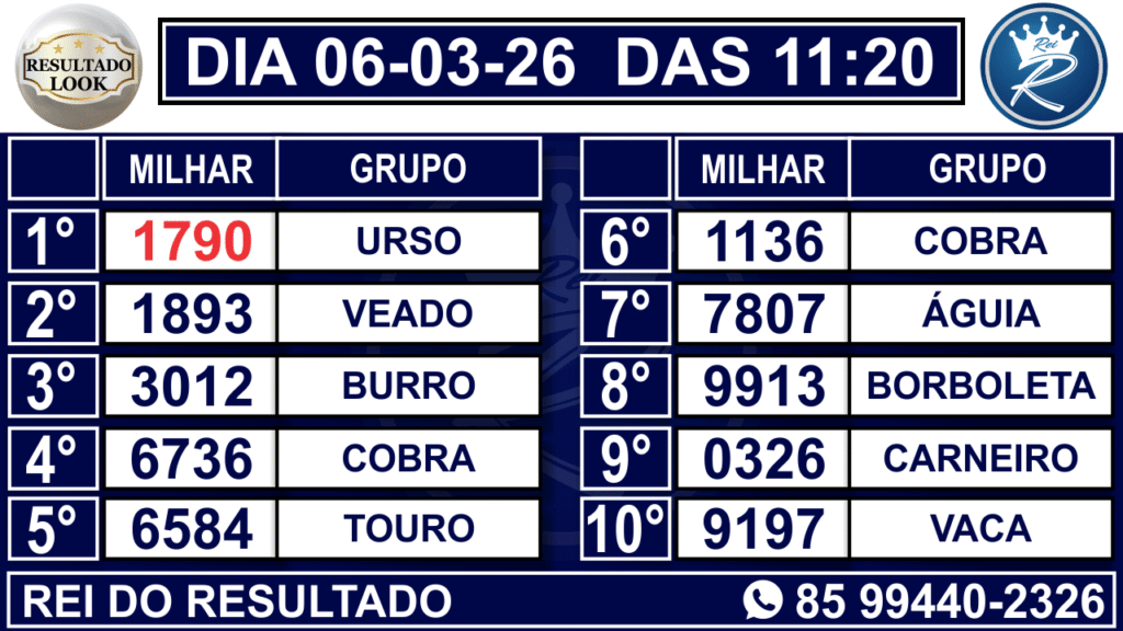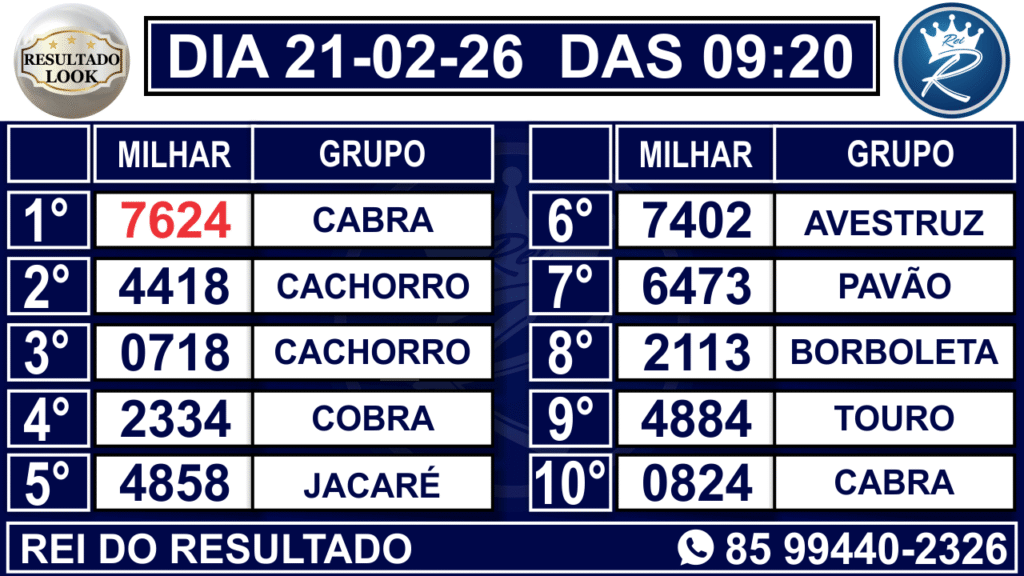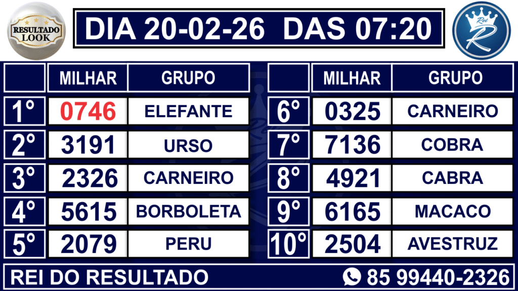 Além disso, aqui você encontra os resultados nos seguintes horários oficiais: 07:20, 09:20, 11:20, 14:20, 16:20, 18:20, 21:20 e 23:20. Dessa forma, você acompanha todos os sorteios do dia, desde o início da manhã até a última rodada da noite.