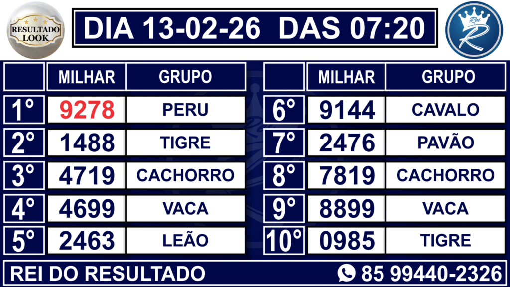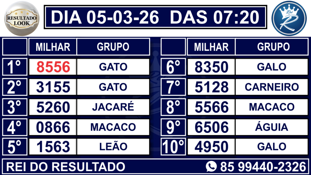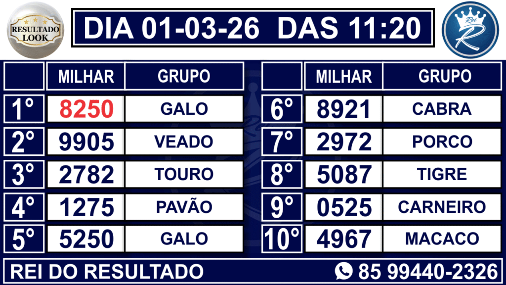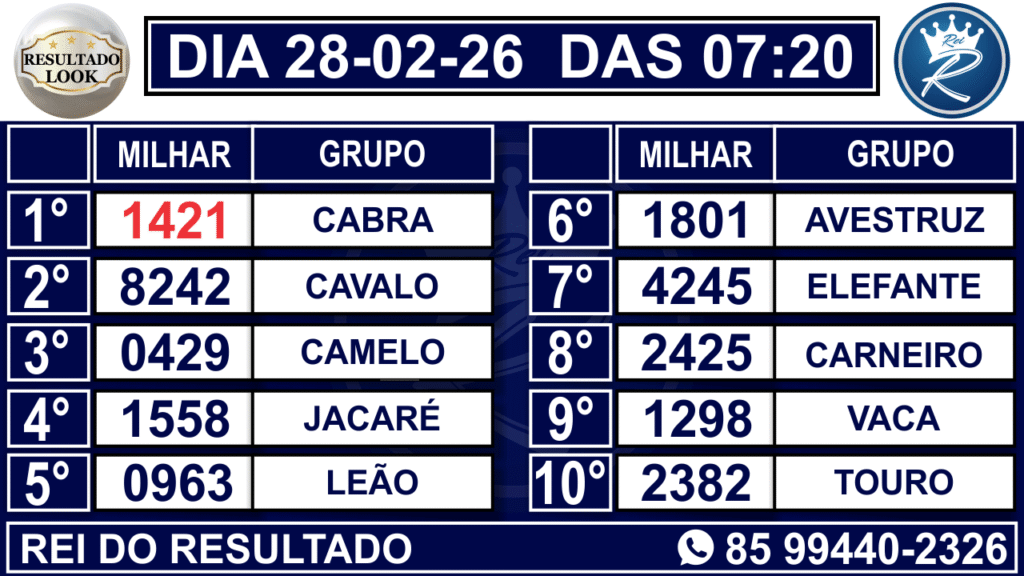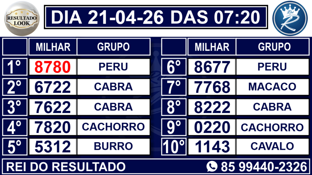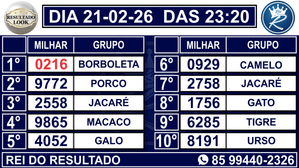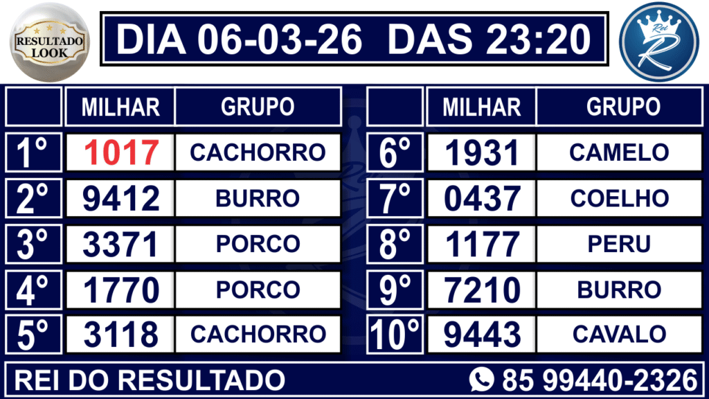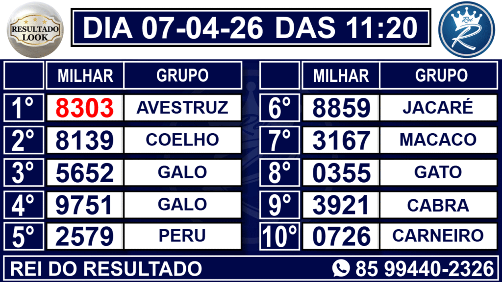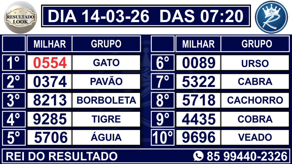 Além disso, aqui você encontra os resultados nos seguintes horários oficiais: 07:20, 09:20, 11:20, 14:20, 16:20, 18:20, 21:20 e 23:20. Dessa forma, você acompanha todos os sorteios do dia, desde o início da manhã até a última rodada da noite.