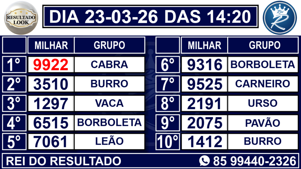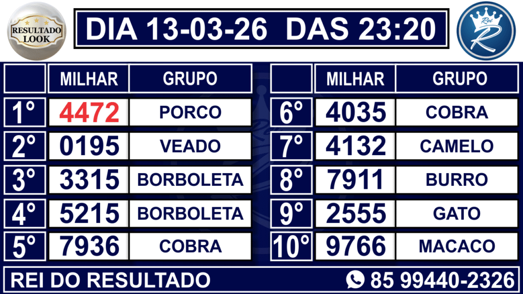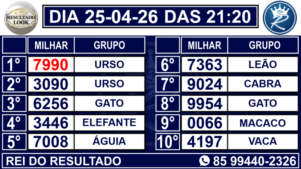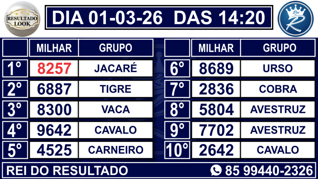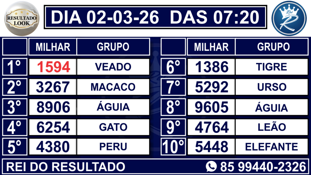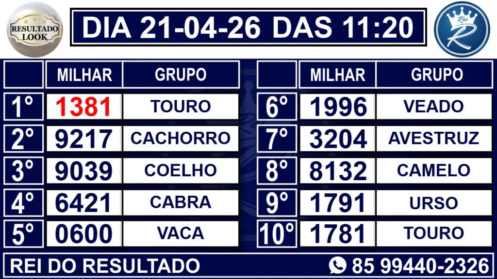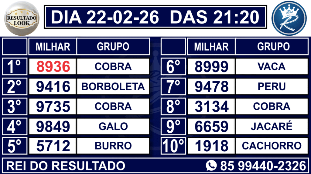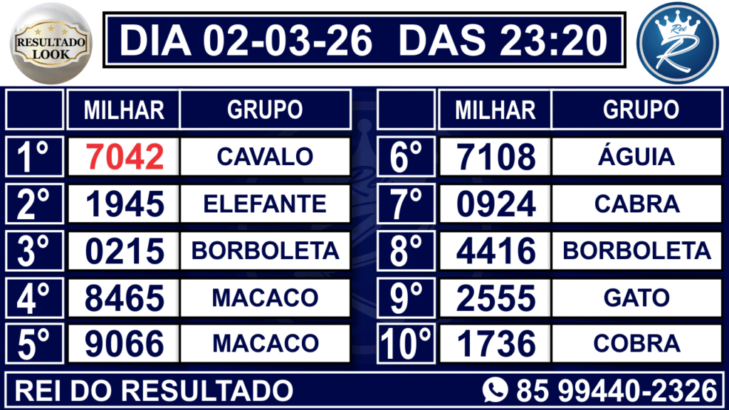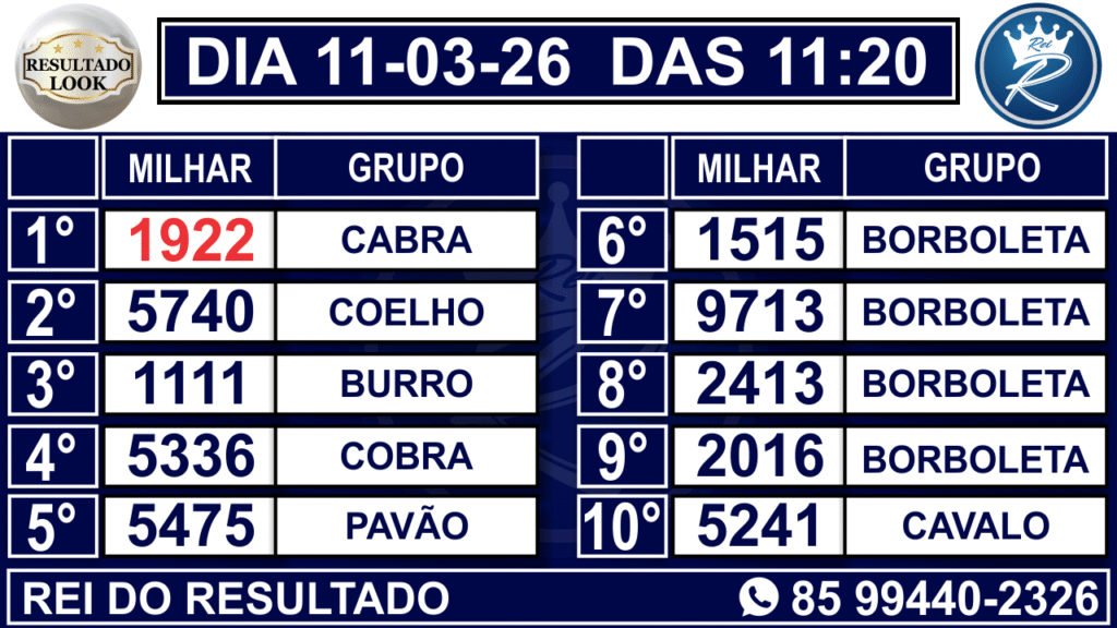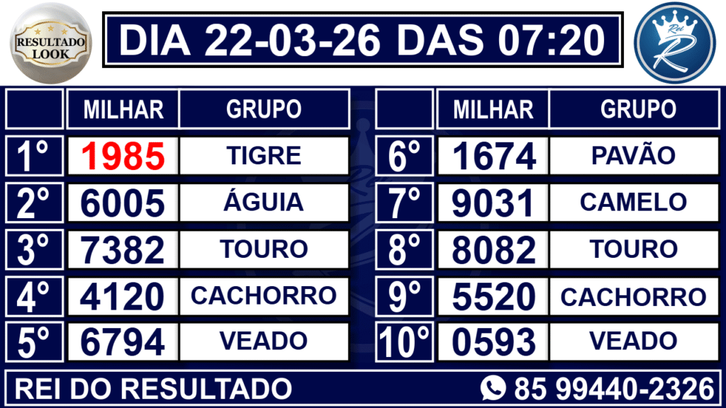 Além disso, aqui você encontra os resultados nos seguintes horários oficiais: 07:20, 09:20, 11:20, 14:20, 16:20, 18:20, 21:20 e 23:20. Dessa forma, você acompanha todos os sorteios do dia, desde o início da manhã até a última rodada da noite.